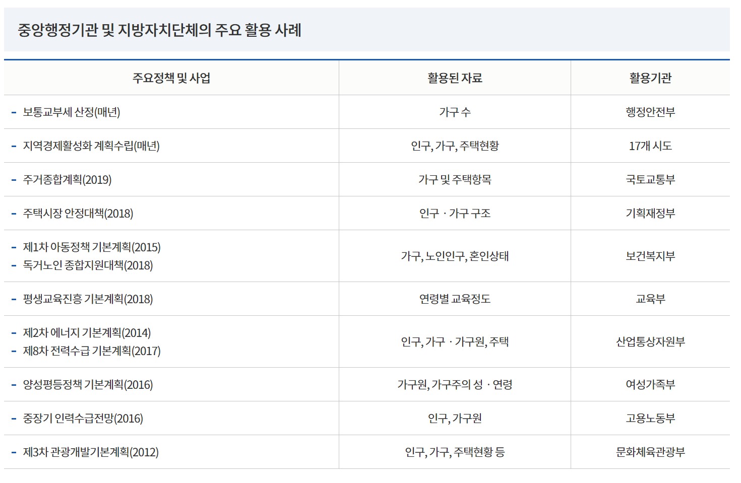 ▶ 인구주택총조사 이런 곳이 쓰인다!