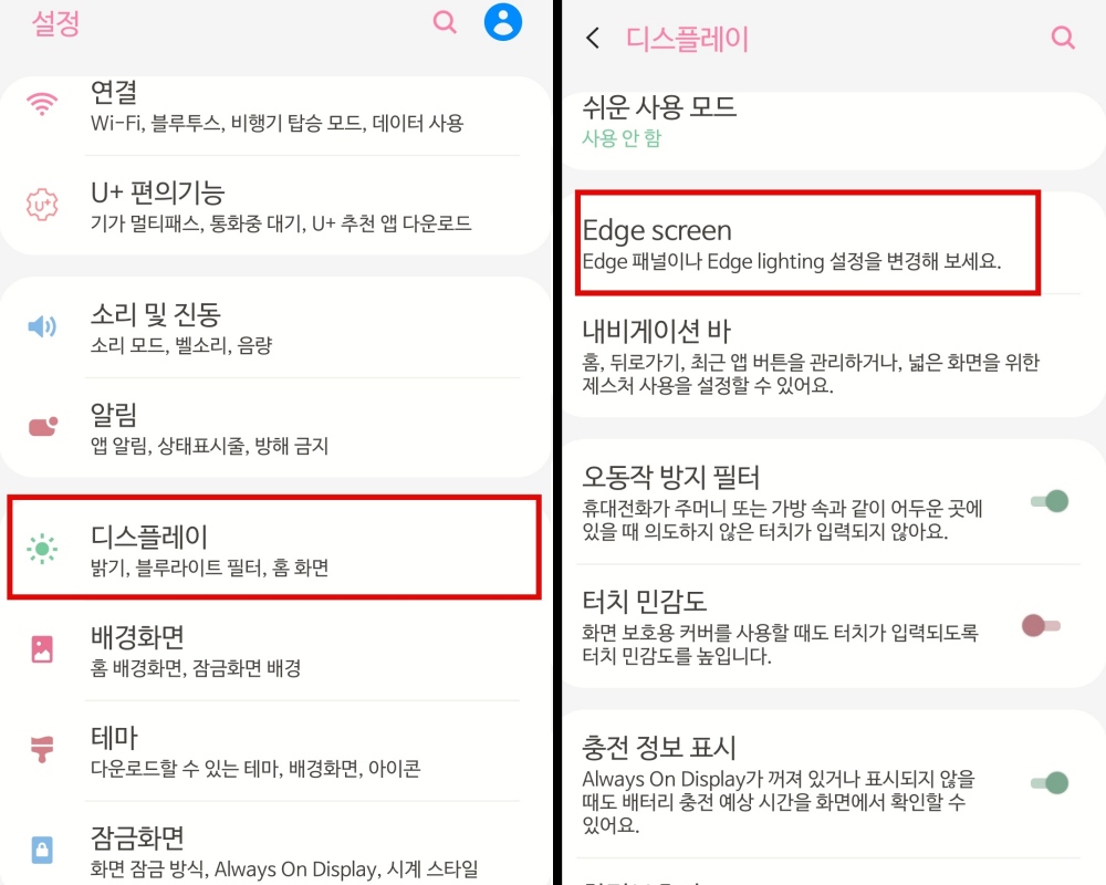 엣지 스크린을 설정할 수 있는 건데요. 여기까지 잘 따라오셨나요?