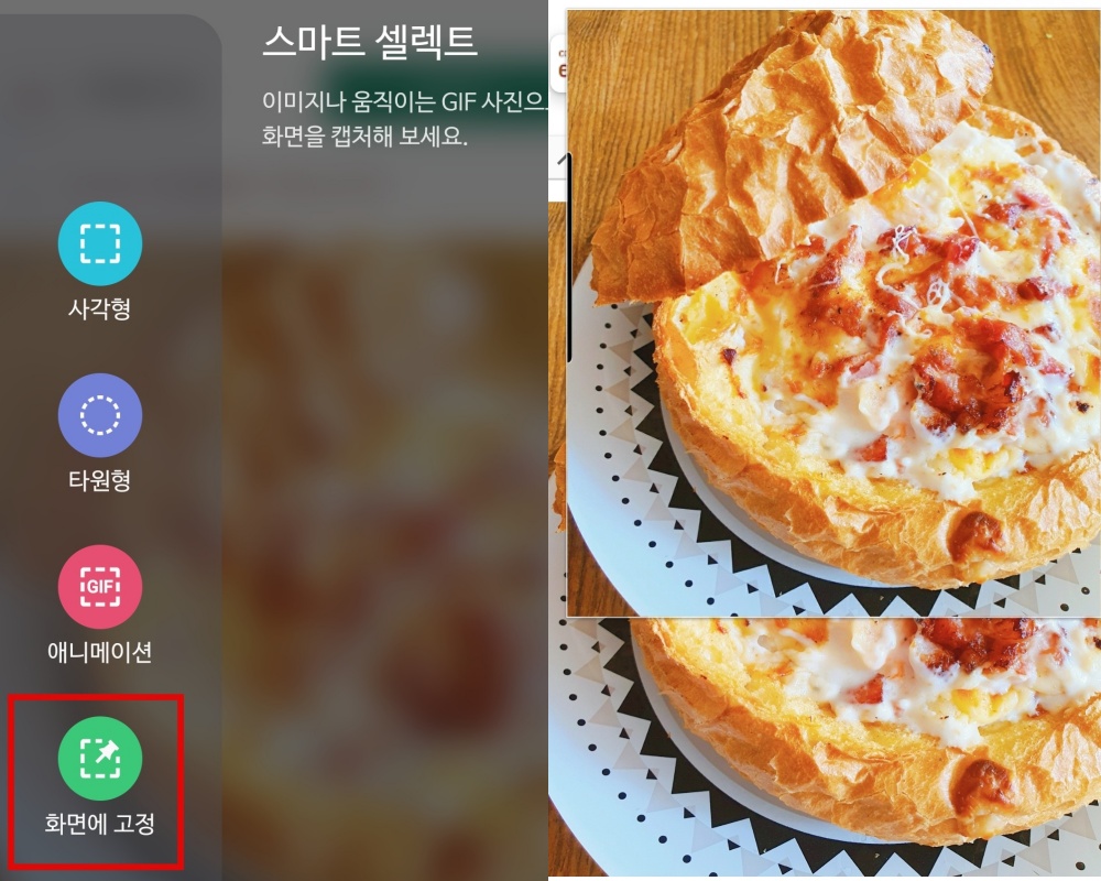 이런 식으로 스마트 셀렉트 화면에 고정 기능을 쓰면 원하는 사진을 똑 떼어다가 고정시킬 수 있습니다.