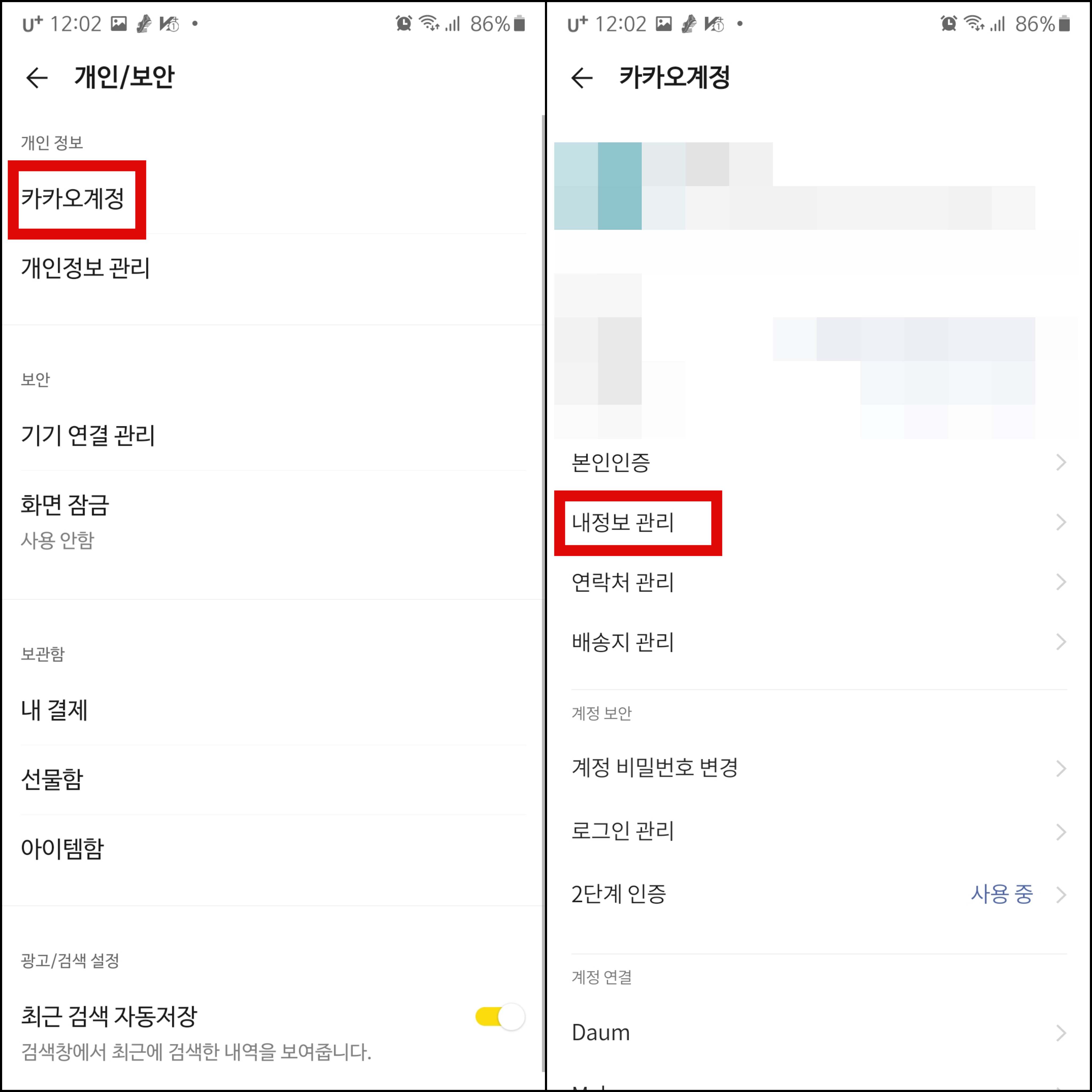 개인/보안으로 잘 들어갔다면 왼쪽 화면이 뜰텐데요.