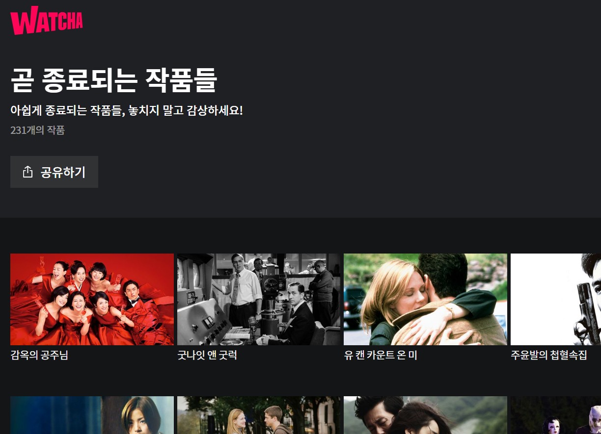 ▶ 왓챠 종료 예정작 리스트 보는 링크