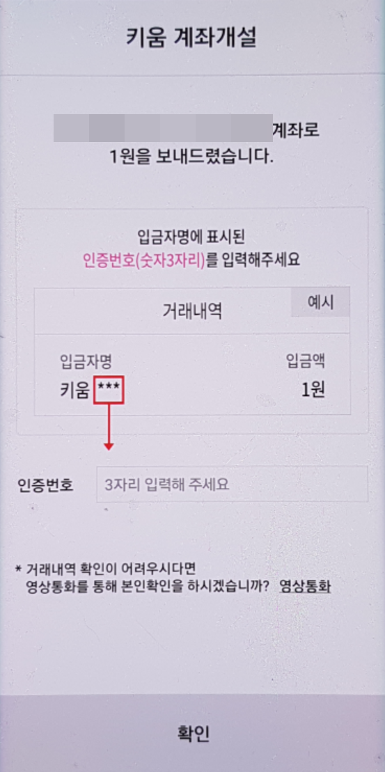 6. 키움증권 계좌개설할 때 본인확인 방법은 두 가지가 있습니다. 1원입금 확인과 영상통화 방식입니다.