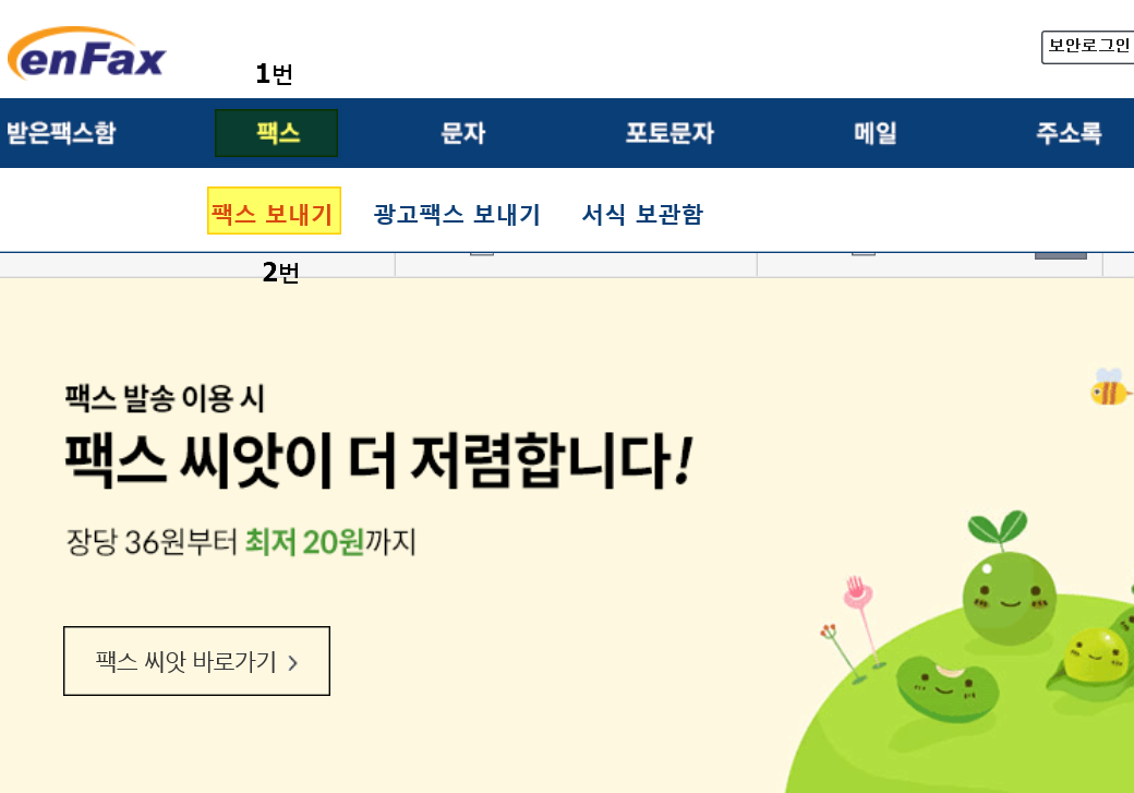 팩스 보내는 법은 인터넷 사이트와 동일합니다.