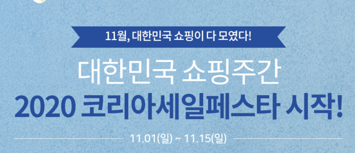 11월 1일부터 대한민국 쇼핑주간 2020 코리아세일페스타가 시작됩니다.