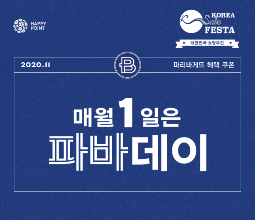 2020년 11월 1일부터 15일까지 진행하는 코리아세일페스타 행사 잘 확인하셔서 즐거운 쇼핑주간 누리세요.