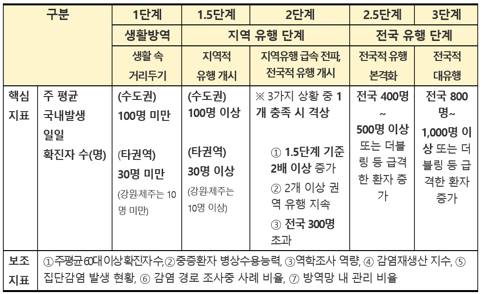 | 생활방역 | 지역적 유행 | 전국적 유행 | ||