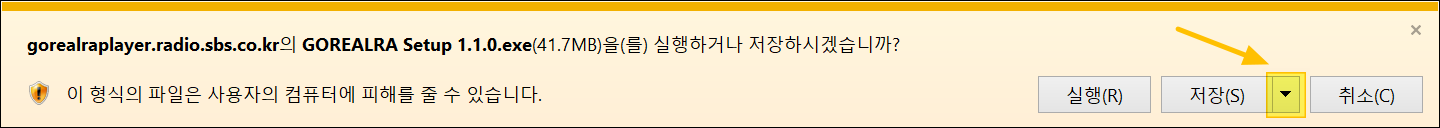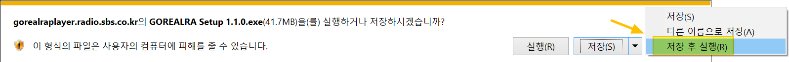 저장 후 바로 이용하고 싶다면 [저장 후 실행]을 클릭합니다. 그러면 바로 SBS고릴라 어플이 설치됩니다.