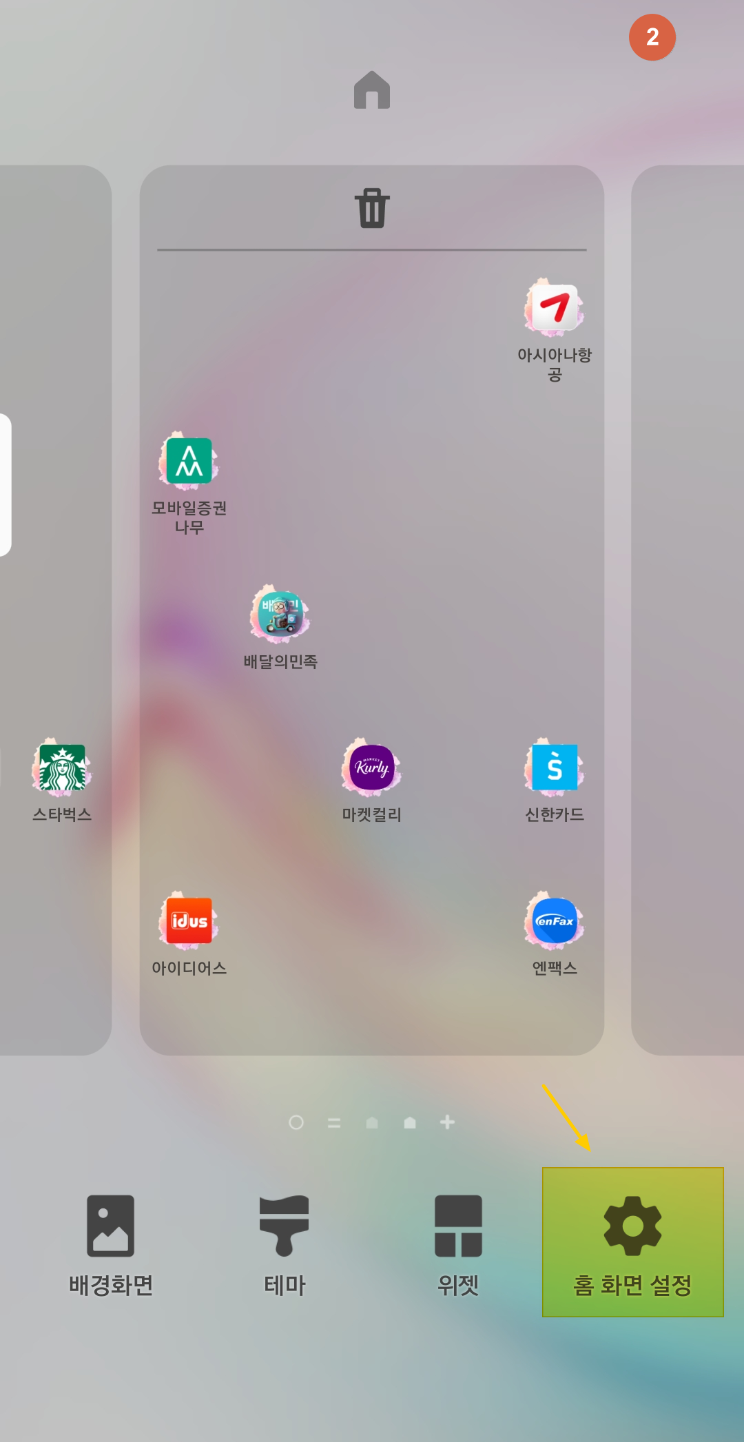 위 방법대로 했다면 홈화면을 이것저것 바꿀 수 있는 설정 화면이 나옵니다.