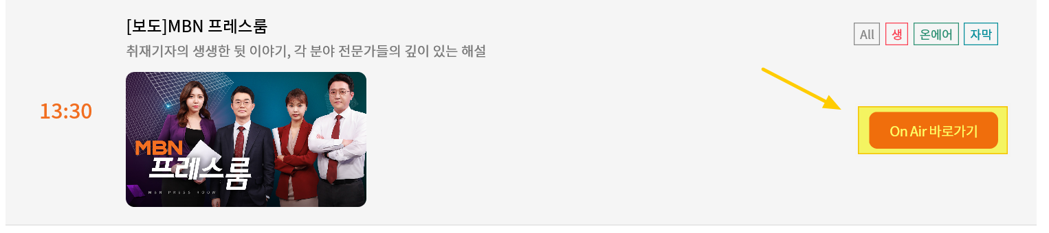 온에어 사이트에서 하이라이트 영상 또한 감상 가능하니 MBN의 프로그램들 짤을 볼 수 있습니다.