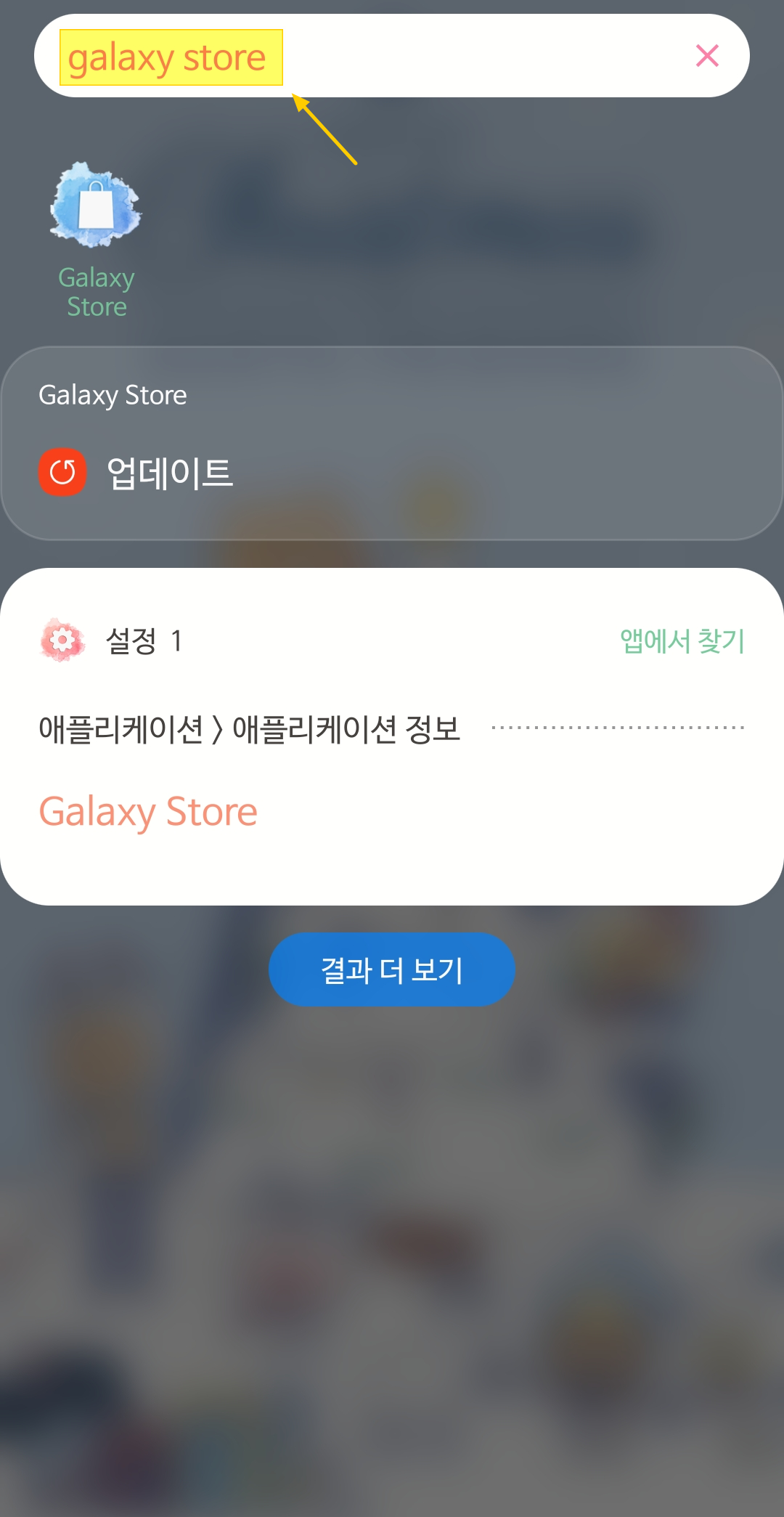 한글로 입력해도 무방합니다. 갤럭시 스토어는 갤럭시 유저라면 누구나 깔려있습니다.