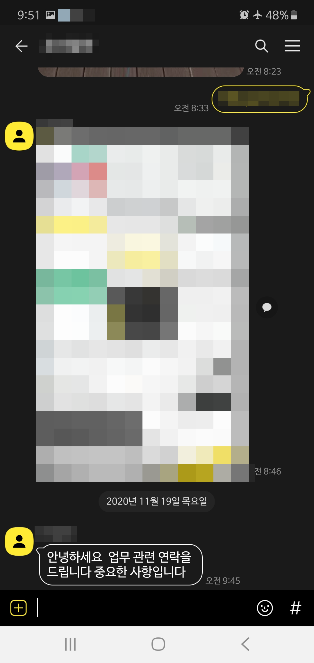 하지만 영 답장을 하고 싶지 않은 카톡이 있습니다. 특히나 퇴근 거의 직전쯤 보내는 직장 선배의 카톡은 대충 한 줄만 봐도 야근을 해야 된다는 내용일 거 같은데 애써 모른 척하고 빠른 퇴근을 하고 싶을 때가 있거든요. ㅠㅠ