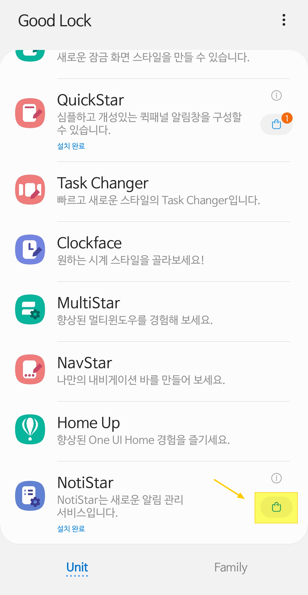 가장 밑에 있는 [NotiStar] 앱을 설치합니다.