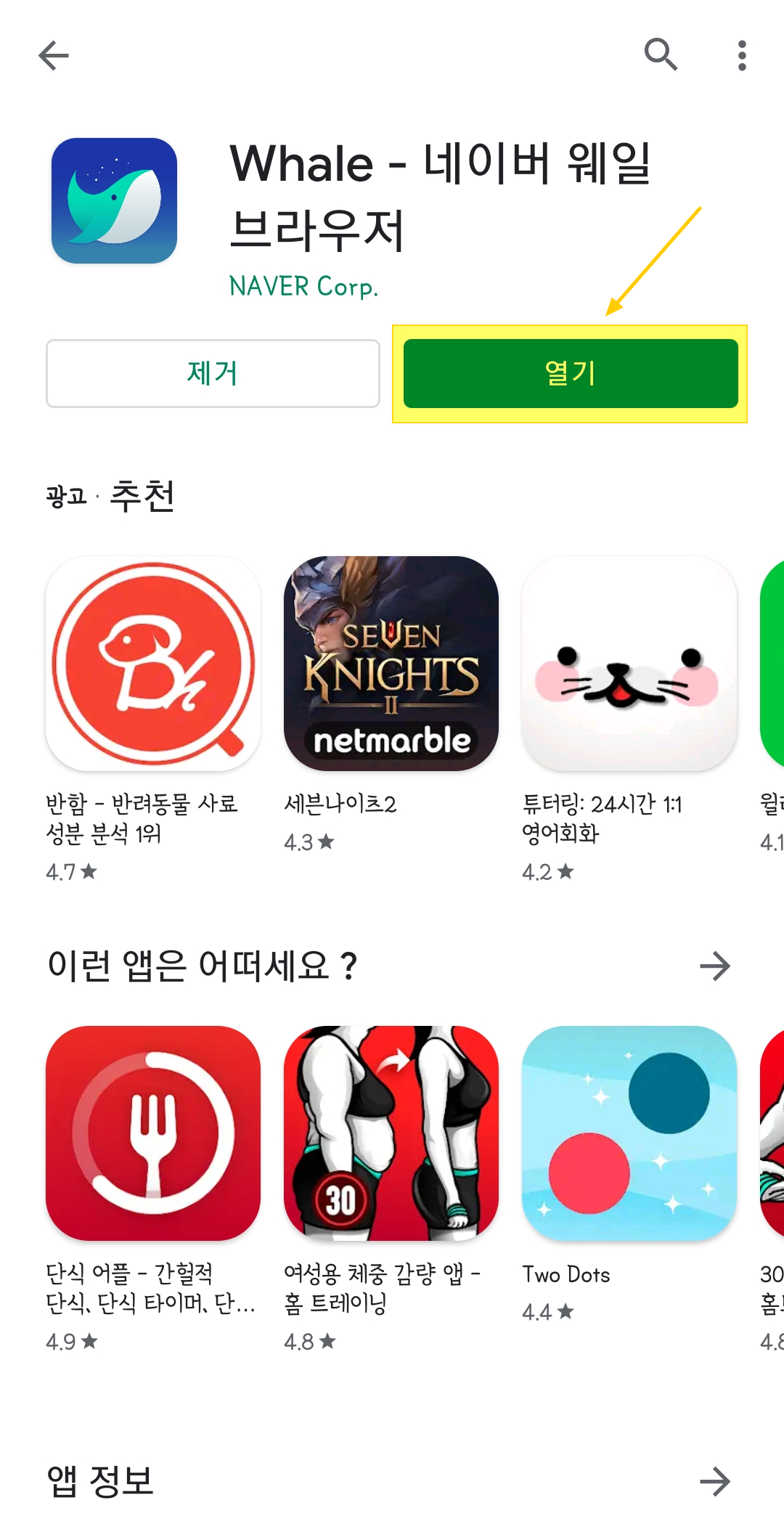 여기까지 마치면 네이버 웨일을 모바일에서 이용할 수 있습니다.