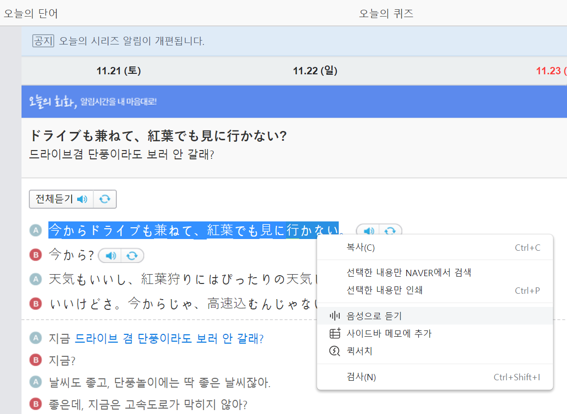 일본어와 같은 경우 네이버 일본어 회화에서 사용해봤는데요.
