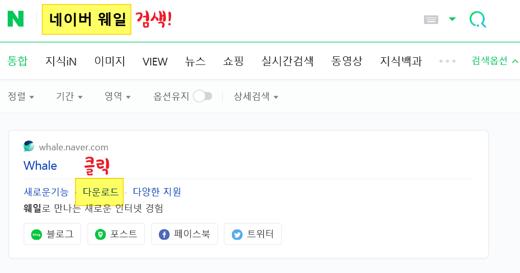 1. 네이버에서 [네이버 웨일]을 검색합니다.