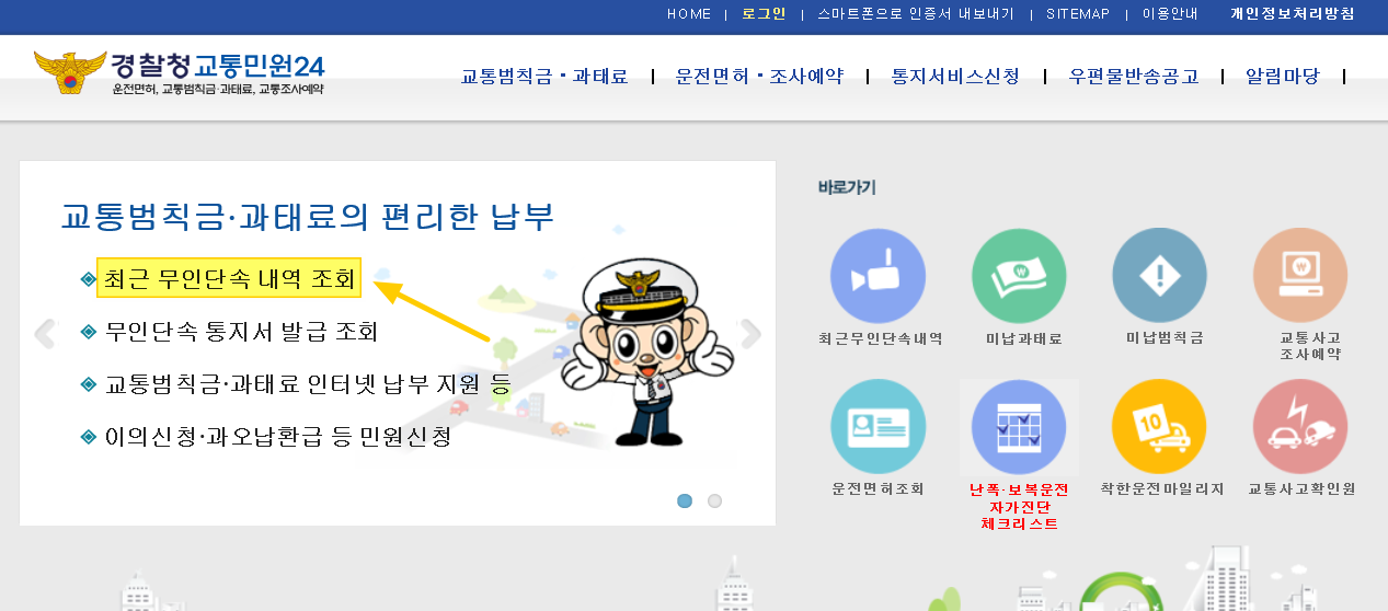 1. 경찰청교통민원24 이파인 사이트 첫 화면으로 다시 가주세요.