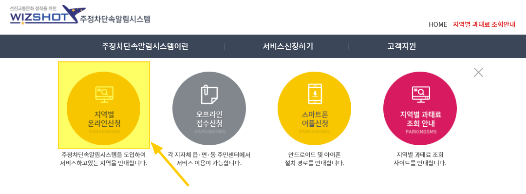 편하게 접속하시려면 위즈샷 직링크(parkingsms.wizshot.com/)로 접속해 주세요.