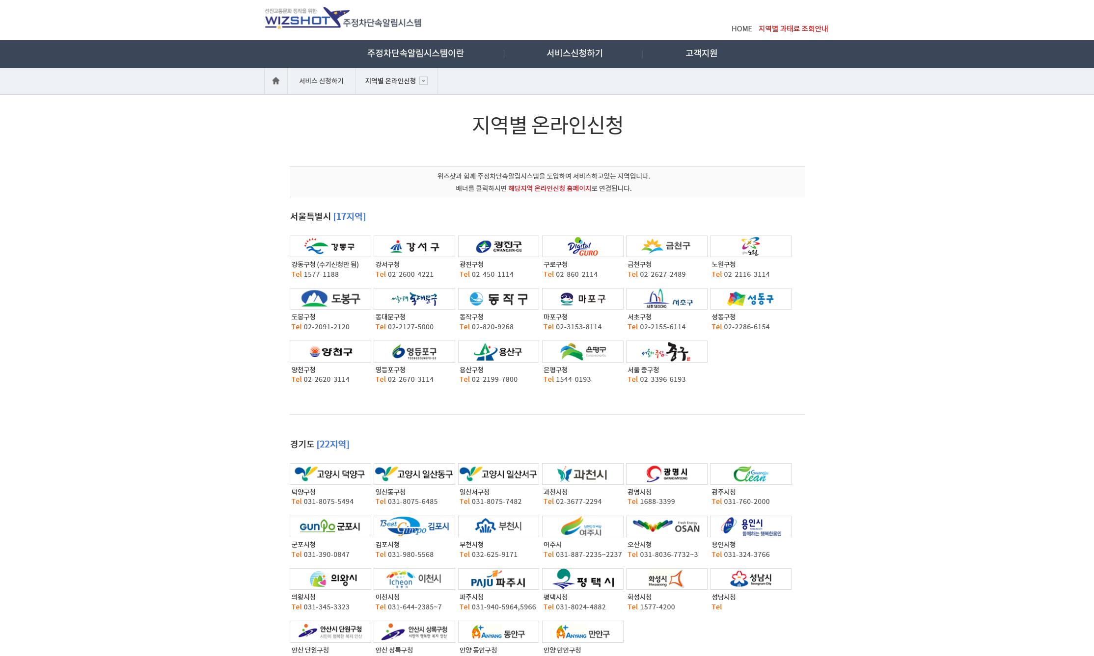 *위즈샷 사이트는 전국에 있는 모든 주정차단속 알림을 신청할 수 있는 서비스를 제공합니다.
