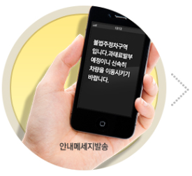 이 서비스는 불법주정차 단속대상이 될 경우 미리 문자를 보내줍니다. 문자를 확인한 후 차를 빨리 다른 구역으로 옮기면 불법주정차 과태료를 물지 않을 수 있는 거죠.