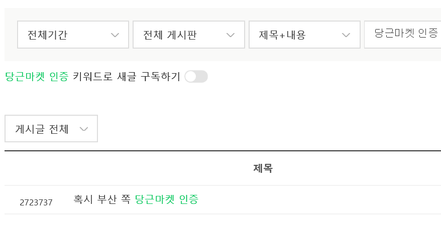 원하는 지역을 당근마켓과 함께 검색하면 간혹 내가 원하는 지역의 인증 관련글이 올라오는 경우가 있습니다.