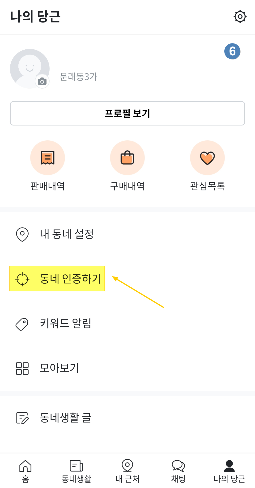 4. 당근마켓에서 내 동네 설정까지 끝냈다면 이제 동네 인증을 하면 됩니다.
