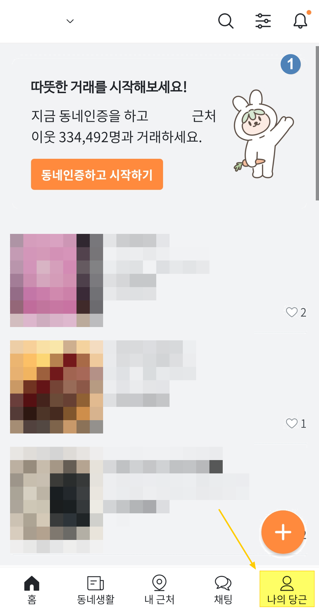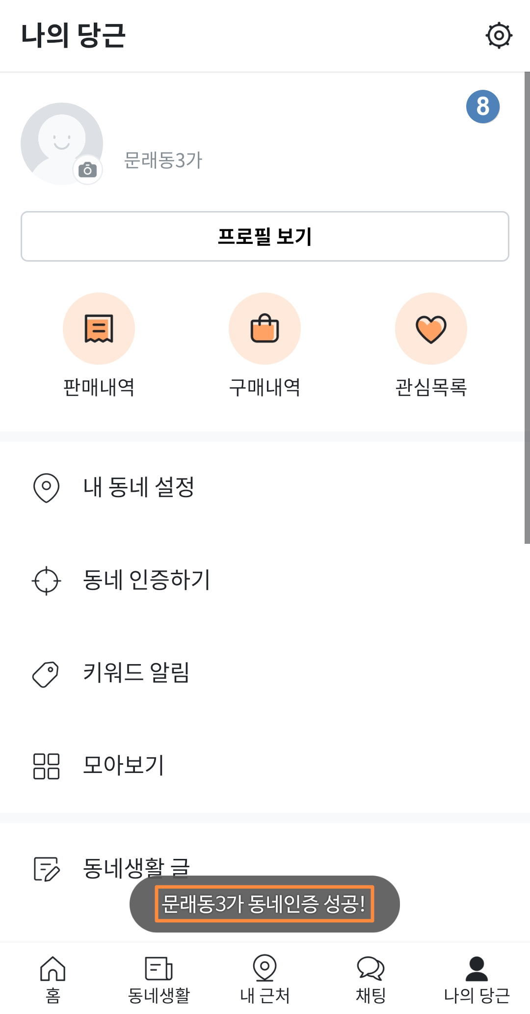 [동네인증 성공]이 뜨면 이제 당근마켓에서 중고거래가 가능합니다.