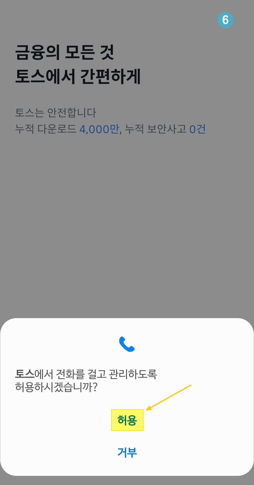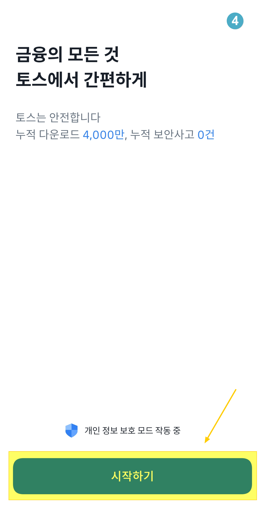 2. 토스 앱을 설치했다면 4번과 같은 첫 화면이 뜹니다.