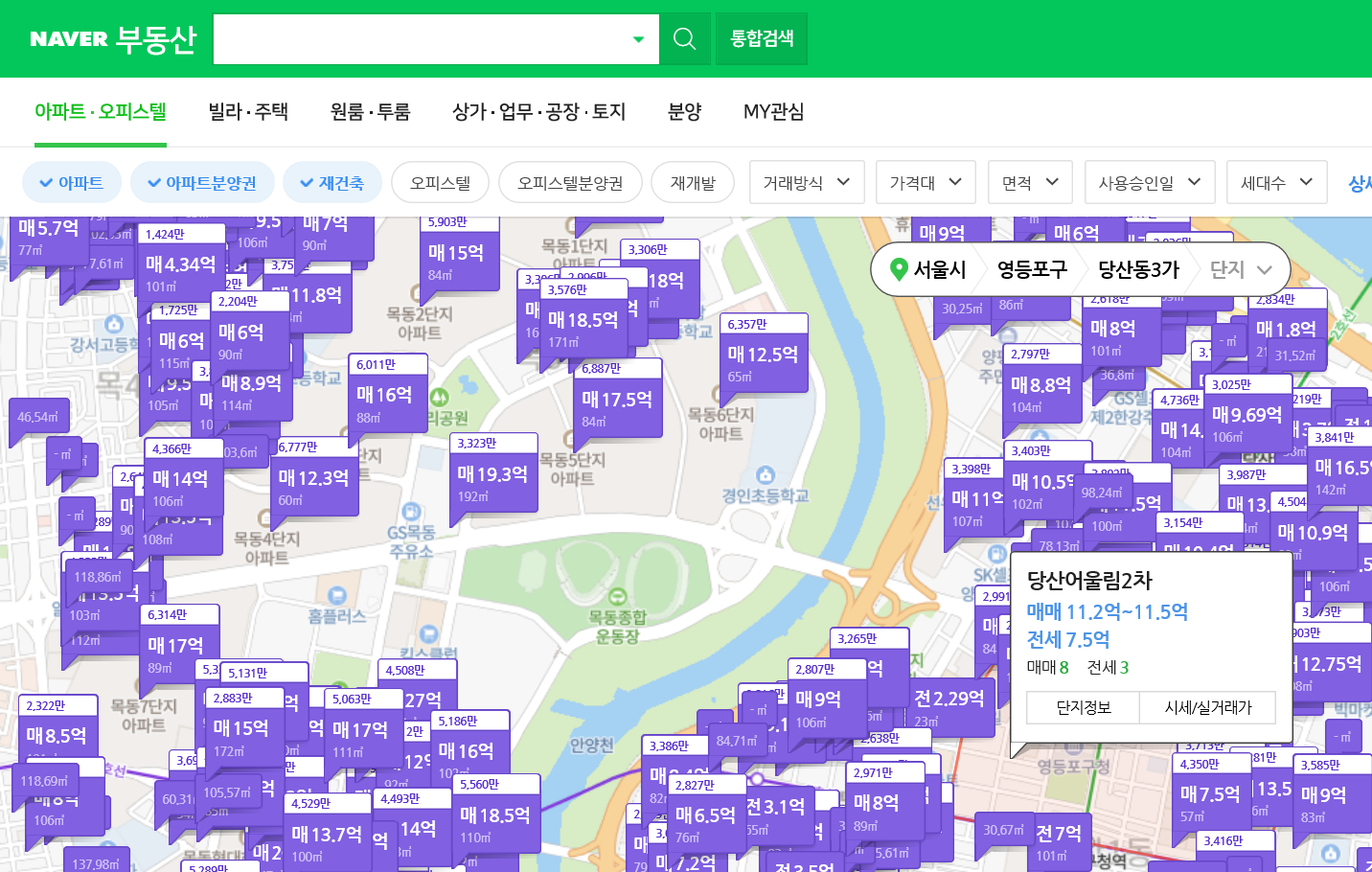 이런 식으로 영등포에 있는 모든 아파트 시세를 조회할 수 있습니다.