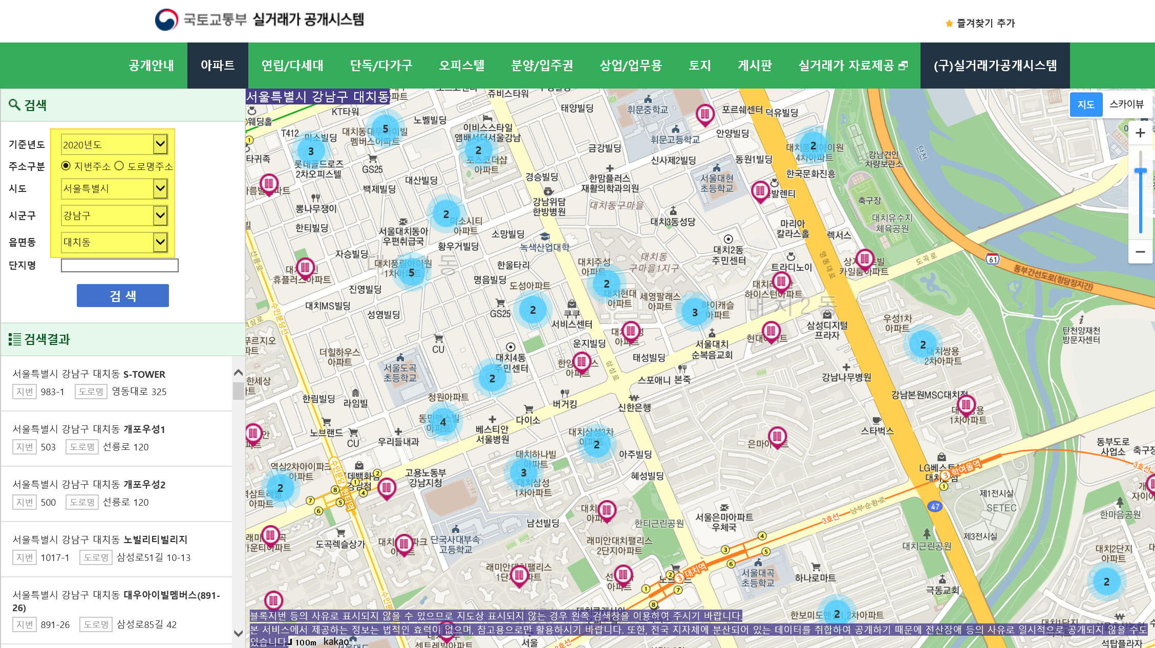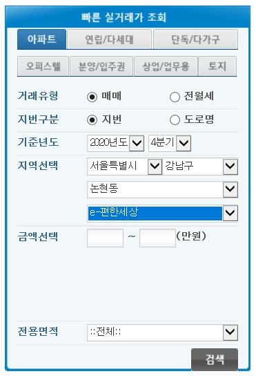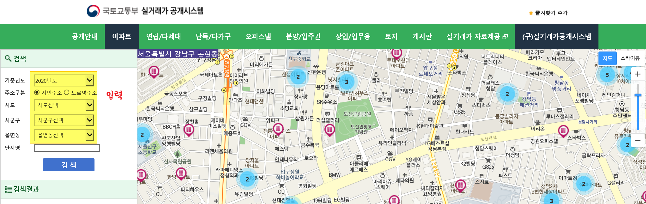 상세하게 검색하고 싶다면 단지명까지 입력해주시면 더 찾기가 쉽습니다.