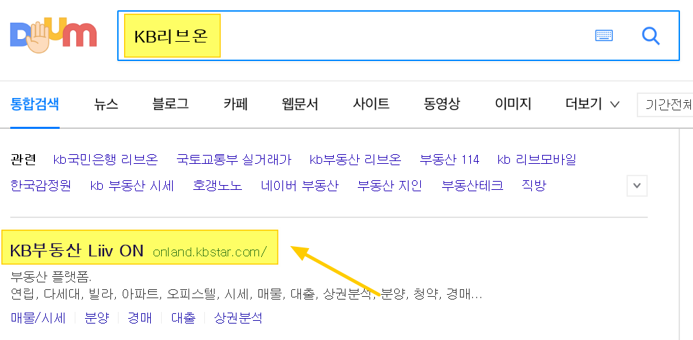 1. 포털 사이트에서 [KB리브온]을 검색한 후 [KB부동산 리브온] 사이트에 접속해 주세요.