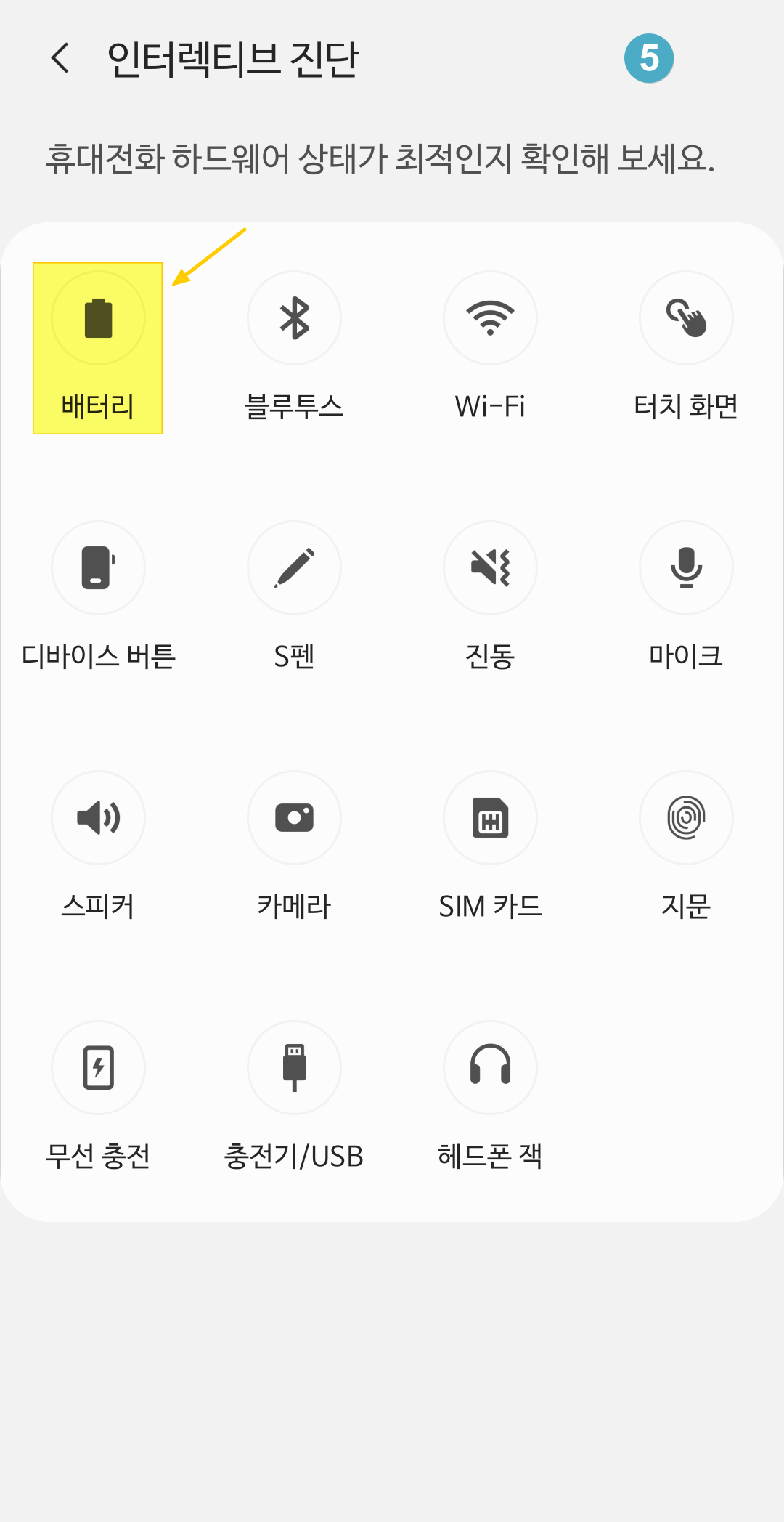 3. 인터렉티브 진단에서는 내 휴대폰에 오류가 있을 경우 진단해 볼 수 있습니다.