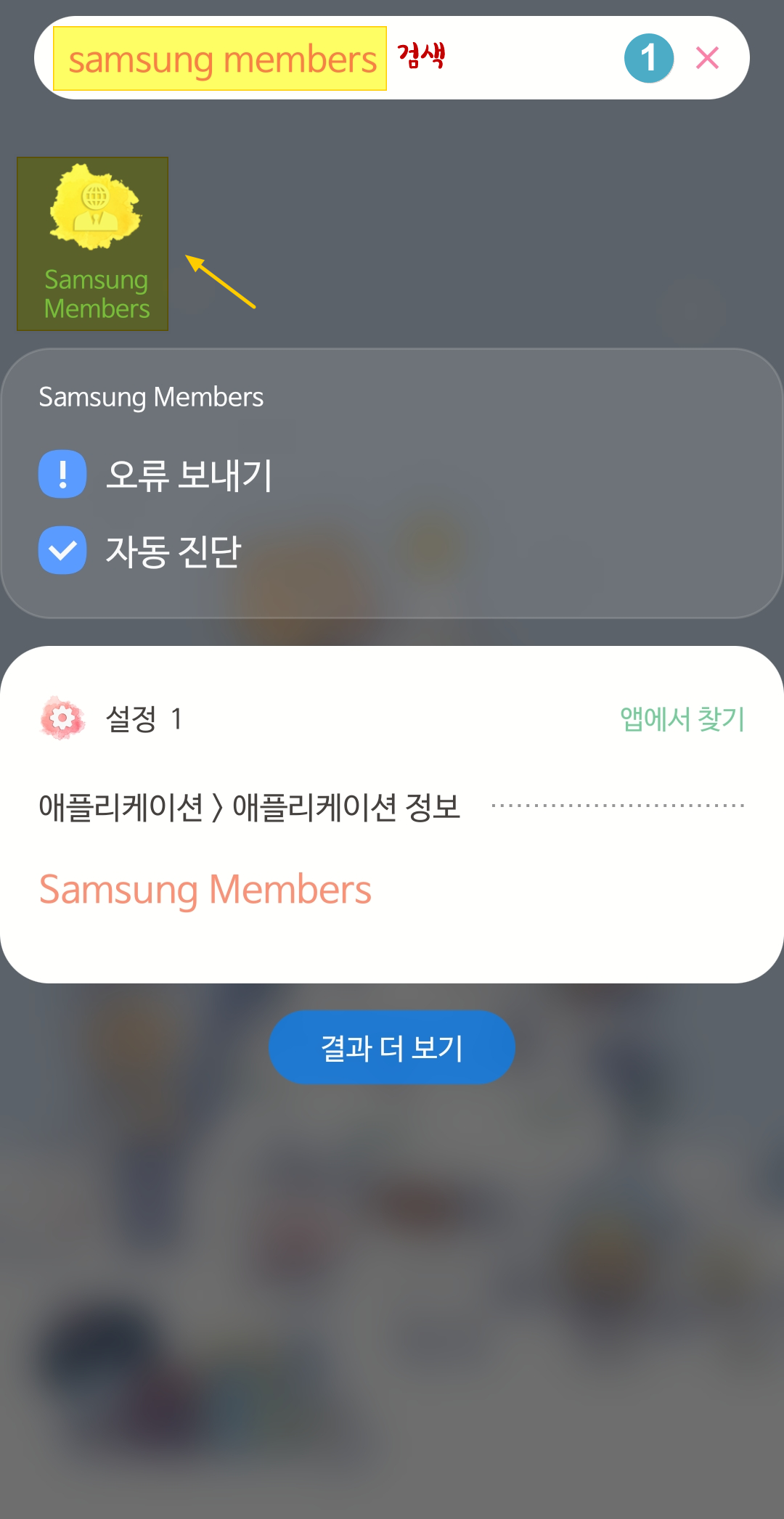 1. 갤럭시 휴대폰 검색창에서 [Samsung members]를 검색합니다.
