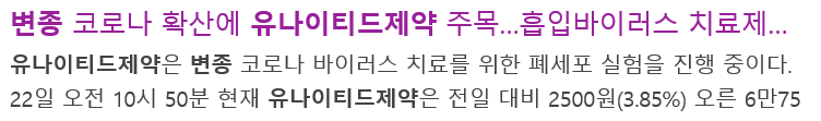 유나이티드제약은 변이 바이러스가 확산되면서 주목 받은 코로나 관련주입니다.