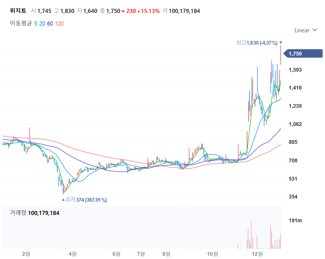 위지트는 가상화폐 대장주로 분류되는 비트코인 관련주 중 하나입니다.