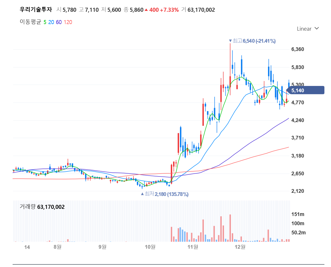 우리기술투자는 가상화폐 거래소인 업비트와 관련된 비트코인 관련주입니다.