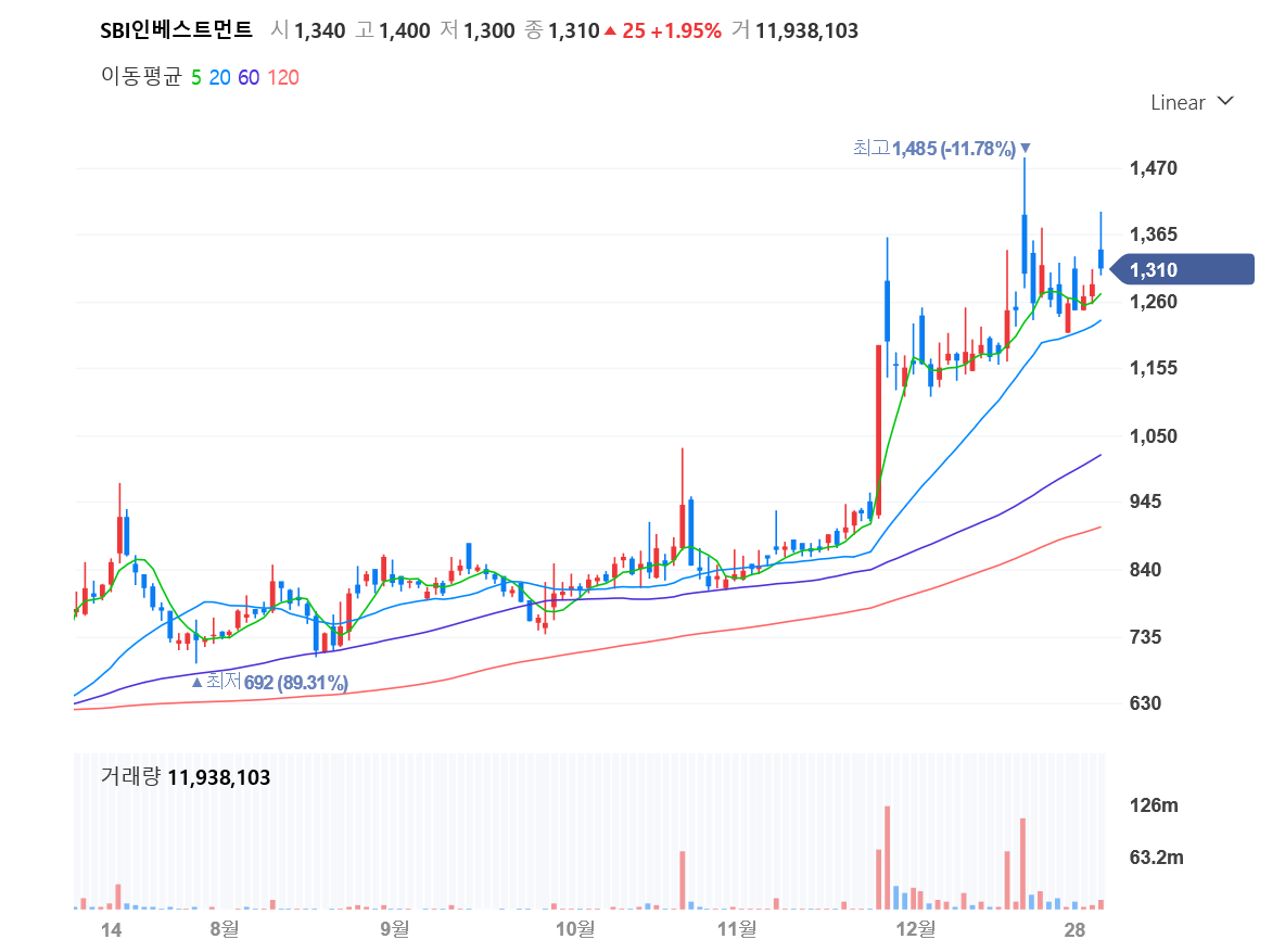 두나무의 지분을 보유하고 있어 비트코인 관련주로 분류됩니다.
