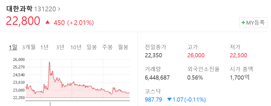 대한과학의 경우는 코로나 관련주로 볼 수 있는데요.