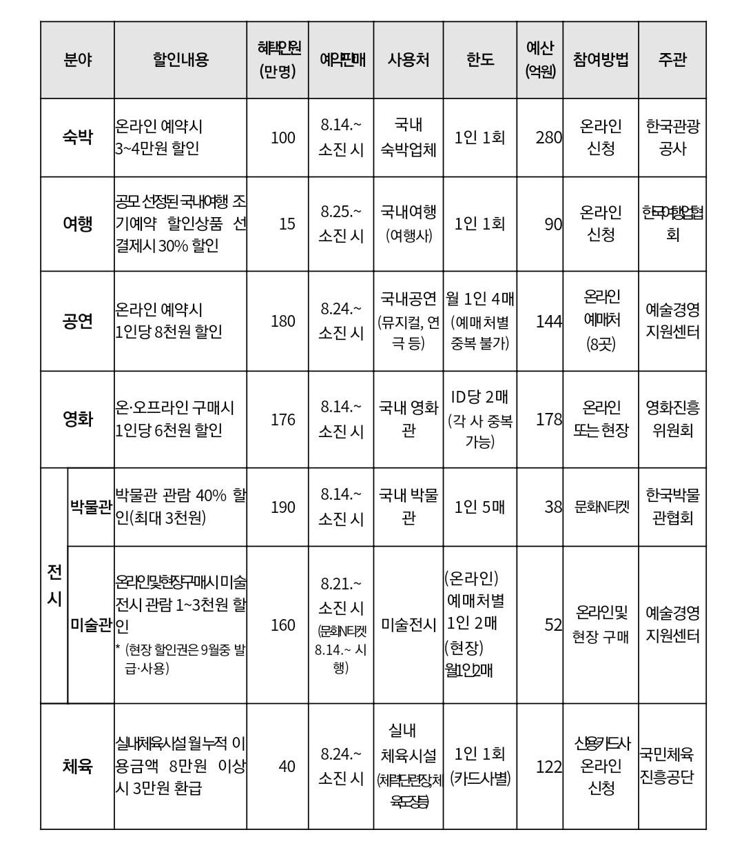 숙박, 여행, 영화, 공연, 전시, 체육 할인 정보