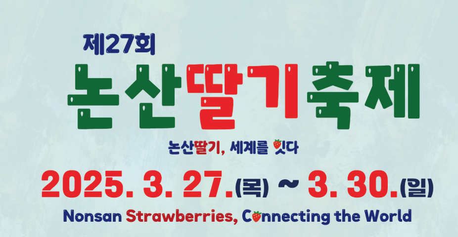 안녕하세요. 오늘은 2025년 3월에 열리는 논산 딸기축제에 관한 정보를 전해드립니다. 논산딸기축제는 매년 충청남도 논산시에서 개최되는 대표적인 지역 축제입니다. 2025년에는 '논산딸기, 세계를 잇다'라는 주제로 3월 27일 목요일부터 3월 30일 일요일까지 총 4일간 논산시민가족공원 일원에서 열릴 예정입니다.