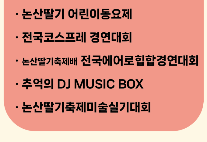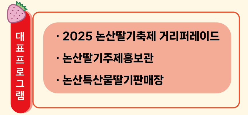 이번 봄, 논산딸기축제에서 달콤함 가득한 하루 보내보세요! 친구, 연인, 가족과 함께 딸기의 세계로 시간 여행을 떠나는 기분을 느낄 수 있을 거예요! 2025년 논산 딸기축제 꼭 보러 오세요!!