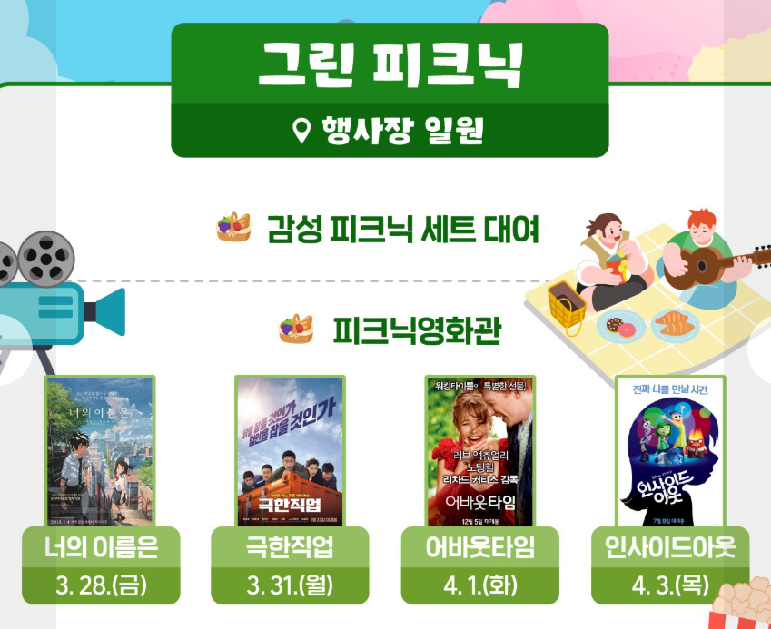 피크닉존 및 피크닉 세트 대여: 방문객들이 벚꽃 아래에서 여유롭게 피크닉을 즐길 수 있도록 피크닉존이 마련되며, 피크닉 세트 대여 서비스도 제공됩니다.