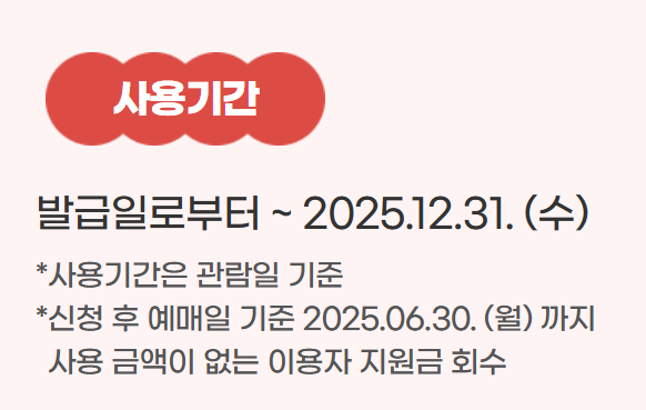- 사용처 변경: 지원 금액이 남아 있는 경우에 한해, 지정된 일정 내에 협력 예매처 변경이 1회 가능합니다.