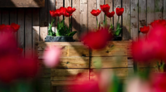 : 다양한 색상의 튤립이 펼쳐진 정원을 자유롭게 산책하며 사진 촬영을 즐길 수 있습니다.