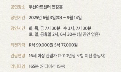 프리뷰 티켓 오픈 공연기간 : 2025년 6월 3일(화) ~ 6월 8일(일)