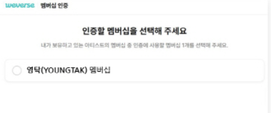 4, 멤버십 인증 페이지가 뜨는데 영탁 팬클럽을 클릭해주세요.