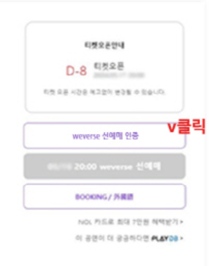 1. 예매 페이지에 있는 위버스 선예매 인증 버튼을 클릭합니다.