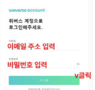 2. 영탁 공식 멤버십 1기 영탁앤블루스 위버스 계정을 입력합니다. 아이디랑 비밀번호를 입력해주세요.