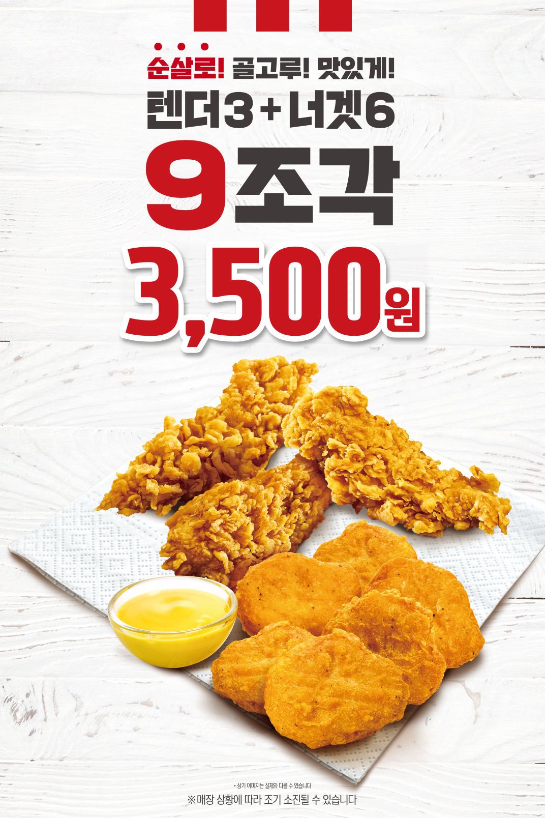 ▶KFC 텐더 3조각 + 너겟 6조각 3,500원 판매 이벤트