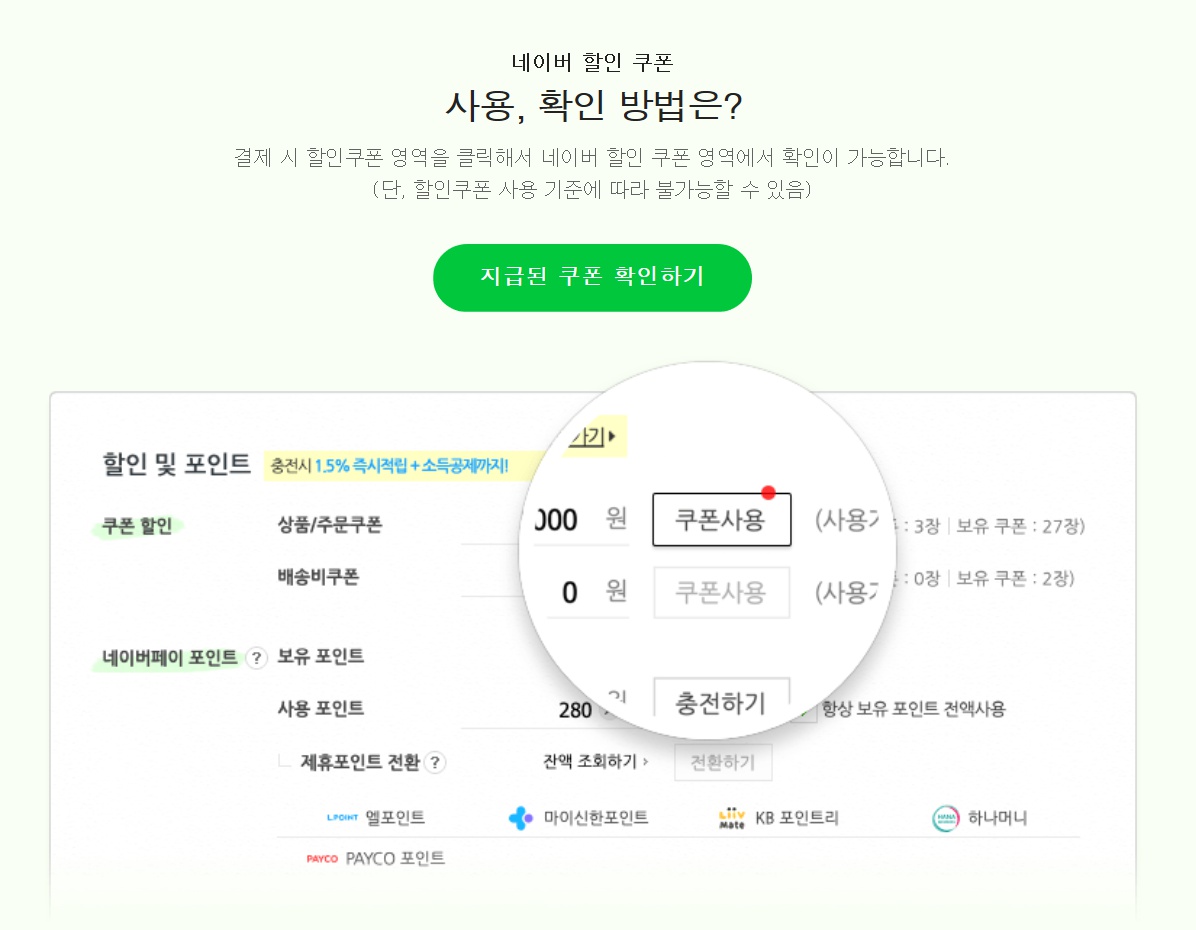 지급받은 쿠폰은 네이버 할인 쿠폰 영역에서 확인 후 사용 가능합니다.